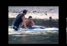 Surfisti salvano una piccola balena spiaggiata