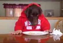 Un cane mangia a tavola come un essere umano. Non ci credete? Basta guardare il video.