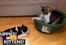 Pixel, un bulldog francese, cerca disperatamente di recuperare la sua cuccia che il gatto di casa gli ha occupato "illegalmente". Le prova proprio tutte!