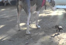 Anche se hanno due taglie completamente diverse, non vuol dire che non possano andare d'accordo e convivere bene insieme. Certo sembrano il gigante e...