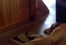 Questo cagnolone ha il sonno molte pesante e russa pure... Sentite che rumori!