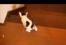 Questo gattino sta imparando a camminare, ma le scale non fanno ancora per lui. Per fortuna non si è fatto nulla.