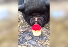 Quando si compiono gli anni bisogna festeggiare. Guardate che bella torta riceve questo maialino!