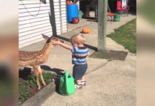 Ma quanto bene si vogliono questo bambino e il suo piccolo amico cerbiatto? Quanti baci!