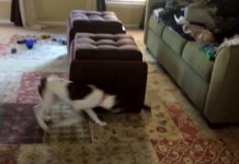 Questo cane continua a rincorrere il suo guinzaglio non accorgendosi che è attaccato a lui...